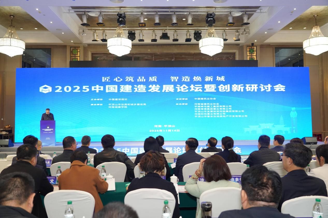 11月14日,2025中国建造发展论坛暨创新研讨会在平顶山举办。本次会议以“匠心筑品质,智造焕新城”为主题,由中国建设报社主办,河南城建学院和平顶山市住房和城乡建设局联合承办。