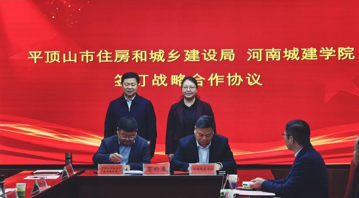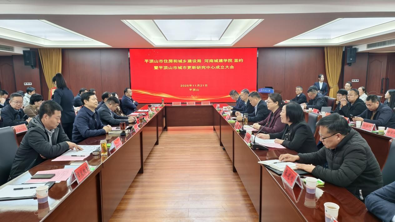 11月21日上午,我校与平顶山市住房和城乡建设局签订战略合作框架协议暨平顶山市城市更新研究中心成立大会在我校行政楼五楼会议室举行。平顶山市委常委,市政府党组成员、副市长刘文祥,校长陈桂香,平顶山市住房和城乡建设局党组书记、局长杨洪涛出席会议。市人大、政协、相关局委、各区负责人、城市更新领域专家代表及我校相关部门负责人参加会议。会议由副校长毛艳丽主持。